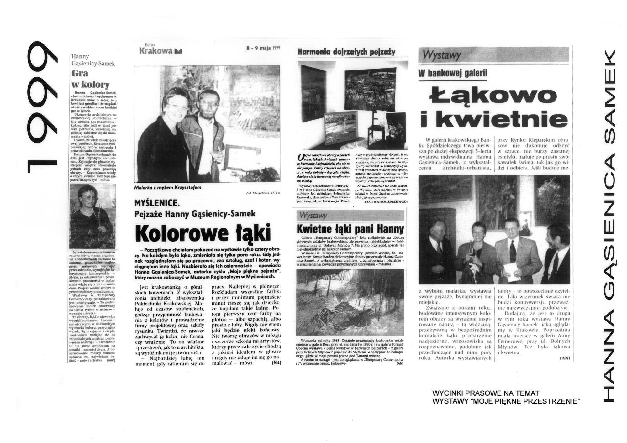 Z podobną wirtuozerią Pani Hanna żongluje kolorami, przy czym zręcznie ukrywa wysiłek włożony w tę ekwilibrystykę. Odnosimy wrażenie, „że to jakoś samo tak się ładnie poukładało”. Lubię je za widoczną w każdym centymetrze kwadratowym płótna empatię dla własnej pracy. Są takie zawody jak nauczyciel czy lekarz, przy wykonywaniu których osobiste zaangażowanie jest nie jakimś mile widzianym dodatkiem, lecz po prostu obowiązkiem. Jeśli artysta tworzy wyłącznie dla pieniędzy, może osiągnąć wprawdzie sukces finansowy, ale trafi tylko do ludzkich portfeli, a nie do serc. Lubię je za unikanie rutyny. W porównaniu z poprzednimi wernisażami Artystka wyraźnie wyciszyła paletę barw, złagodziła kontrasty i przesunęła kompozycję w kierunku abstrakcji, aczkolwiek nie przekraczając zwykle granic czytelności. Nie uzurpuję sobie prawa do oceny efektów tych zmian (skądinąd, podobają mi się i te bardziej wyraziste, i te nokturnowo uładzone obrazy); dodam tylko, że już starożytni twierdzili navigare necesse est. Nieustannie poszukując możemy wprawdzie nie znaleźć nigdy cennych artefaktów, ale stojąc w miejscu na pewno niczego nie znajdziemy. Lubię je za nienachalną, kunsztowną sakralizację działa natury. Bo przecież celem malarstwa, rzeźby, grafiki i w ogóle celem sztuki jest odnalezienie czegoś niezwykłego w banalnym, oryginalnego w pospolitym, zdumiewającego w zwyczajnym, pięknego w całkiem przeciętnym, fascynującego w nudnym. Sacrum w profanum. Lubię je za to, że uspokaja mnie a nie rozdrażnia, cieszy oko a nie przeraża, skłania do pogodnych refleksji a nie do buntu i gniewu, nie zmusza do wysiłku, lecz proponuje chwilę wytchnienia. Lubię je za to, że nie daje się bezceremonialnie zaszufladkować do któregoś z wiodących stylów, że umiejętnie selekcjonuje potrzebne dla własnych celów środki artystycznego wyrazu, nie dając się porwać najbardziej z pozoru atrakcyjnej manierze. Że nieomylnie wybiera złoty środek. Bajecznie kolorowy złoty środek.
